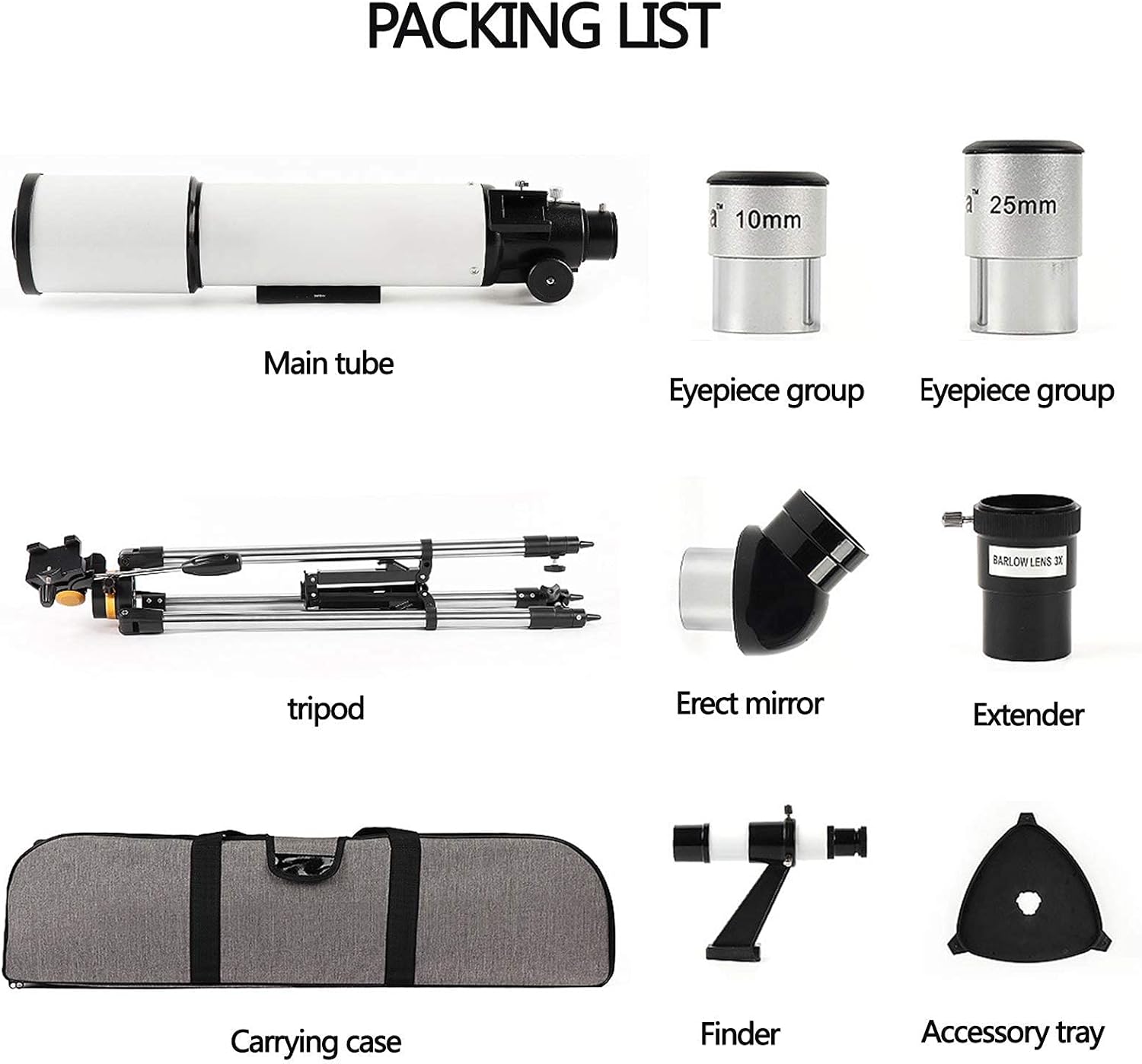 Image: All components included in the Generic 50080 Refractor Telescope package.