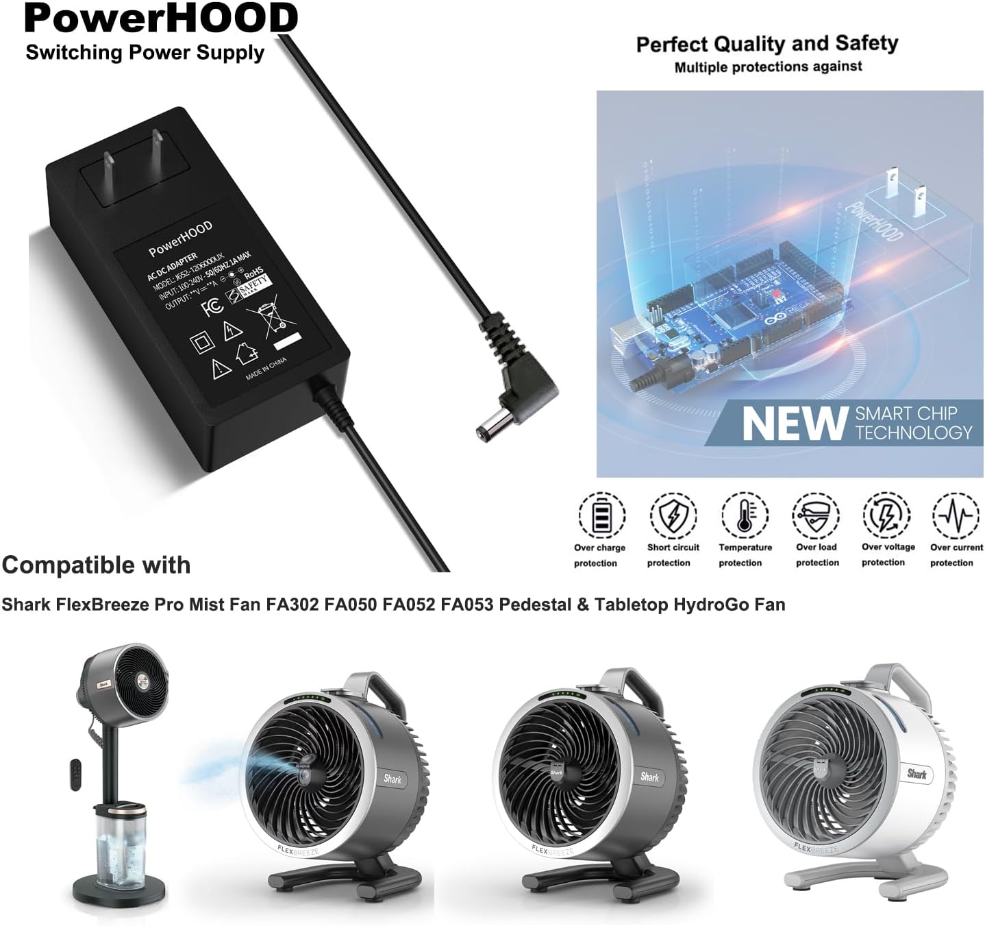 This PowerHOOD 12V AC Adapter is designed to provide reliable power to your compatible Shark FlexBreeze fans. It features advanced technology for efficient and safe operation, ensuring your devices receive stable power.