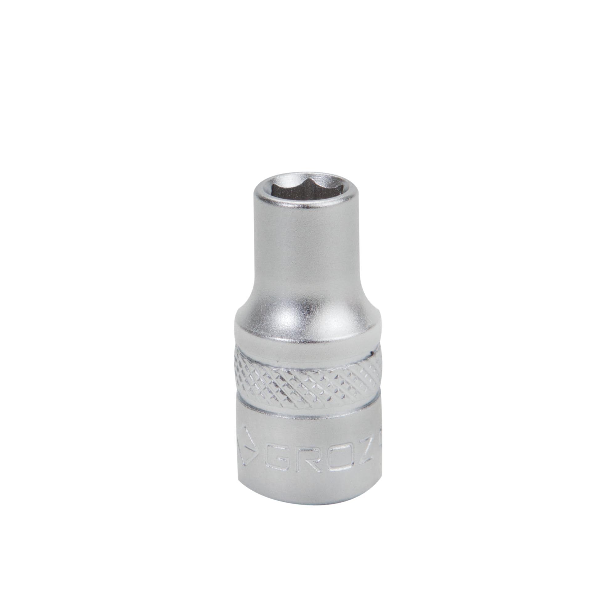 The GROZ Hex Deep Socket is designed for use with a 1/4" square drive ratchet, breaker bar, or torque wrench.