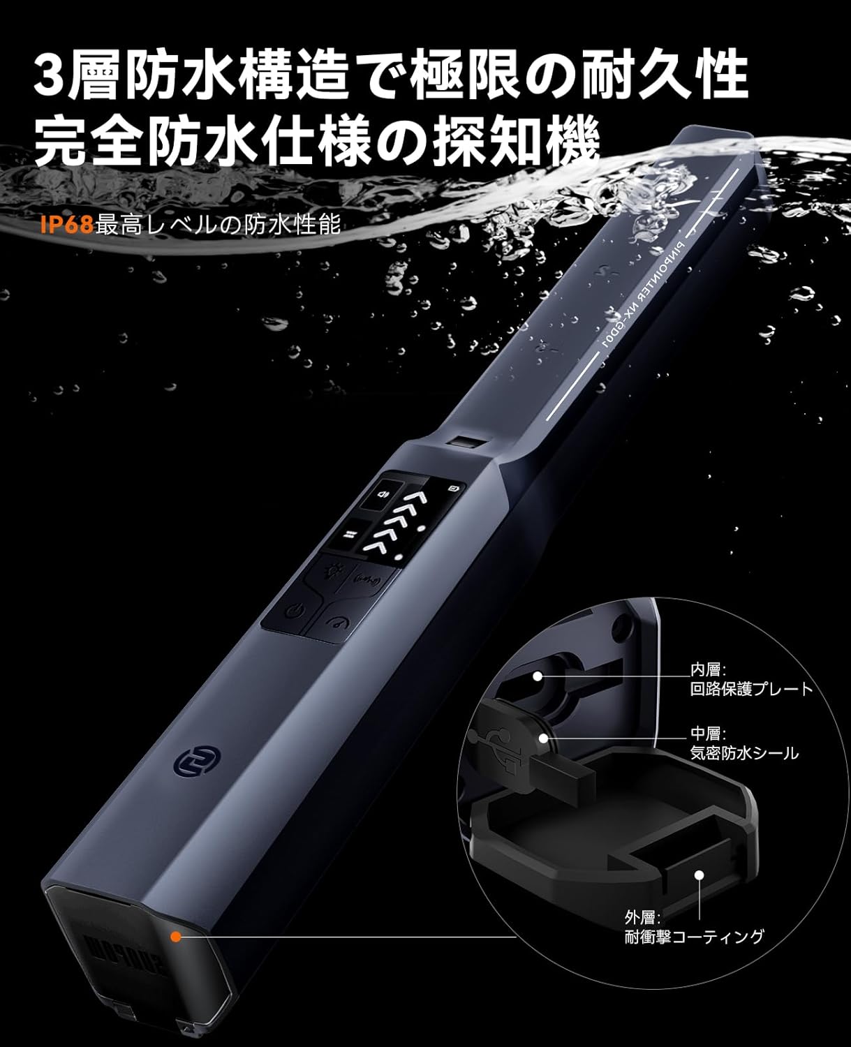 The S24.NXGD01 features an IP68 waterproof rating, allowing the detection coil to be submerged up to 3 meters deep. The device has a 3-layer waterproof structure for extreme durability, including a circuit protection plate, an airtight waterproof seal, and a shock-resistant coating.