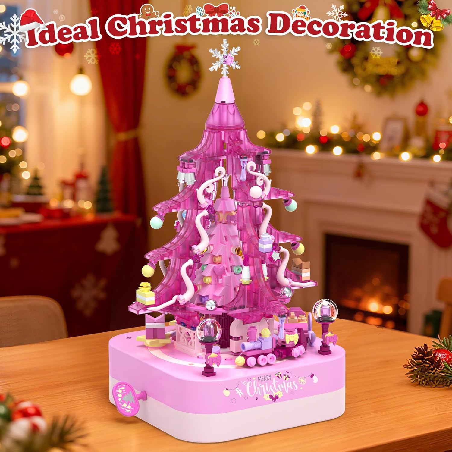 Video: This video demonstrates the assembly process of the SpringFlower Christmas Tree Building Block Set, followed by a demonstration of the music box playing and the tree rotating, highlighting its interactive features.