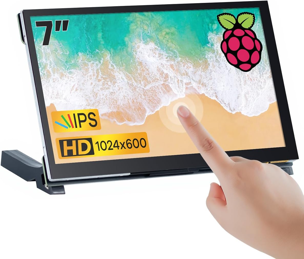 Image: The Hosyond 7-inch IPS LCD Touchscreen Display, highlighting its touch functionality and key features like IPS panel and 1024x600 resolution.