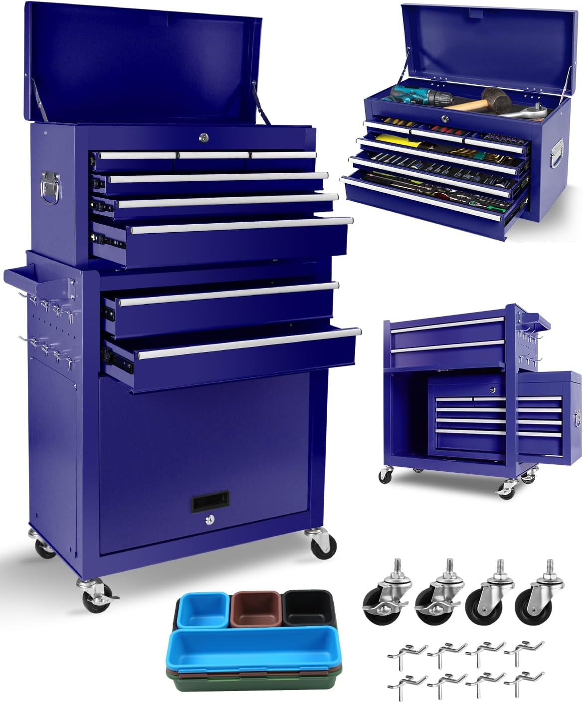 | Included Components | Drawers, Wheels, Drawer Liners, Tool Hooks, Storage Bins |