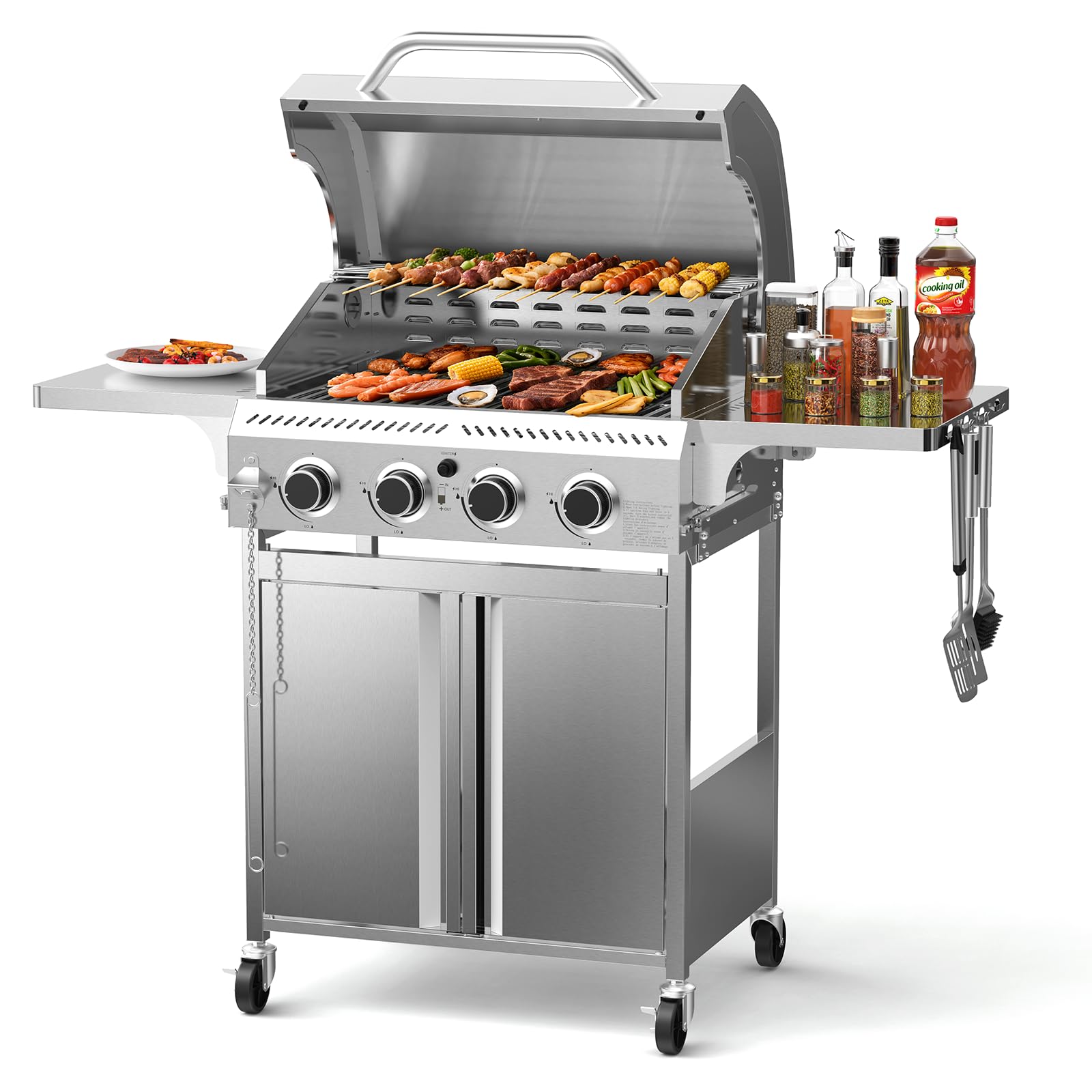 - The 304 stainless steel cooking grids ensure even heat distribution and are easy to clean.