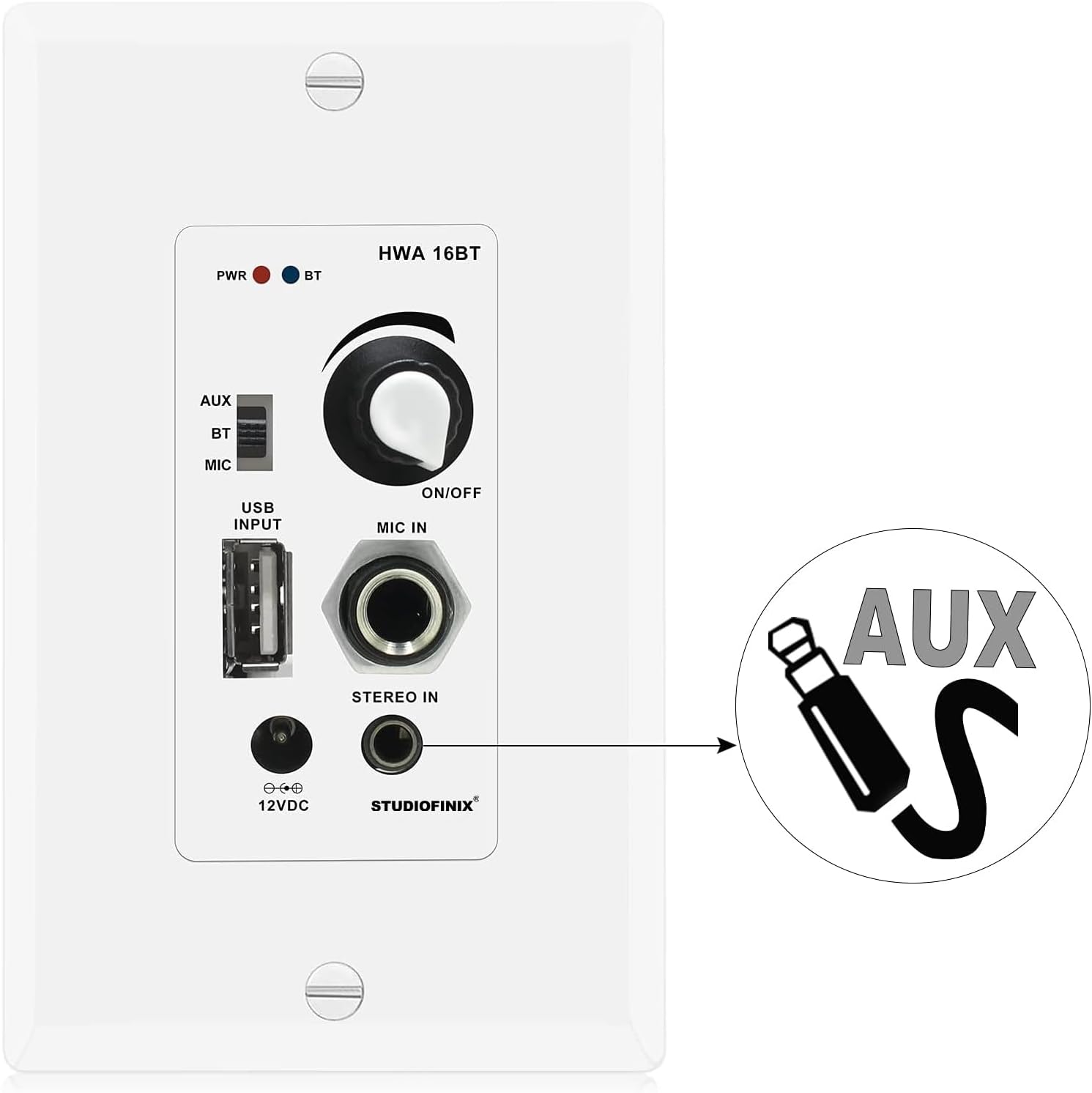 Technical specifications for the STUDIOFINIX In-Wall Audio Control Amplifier Receiver Wall Plate: