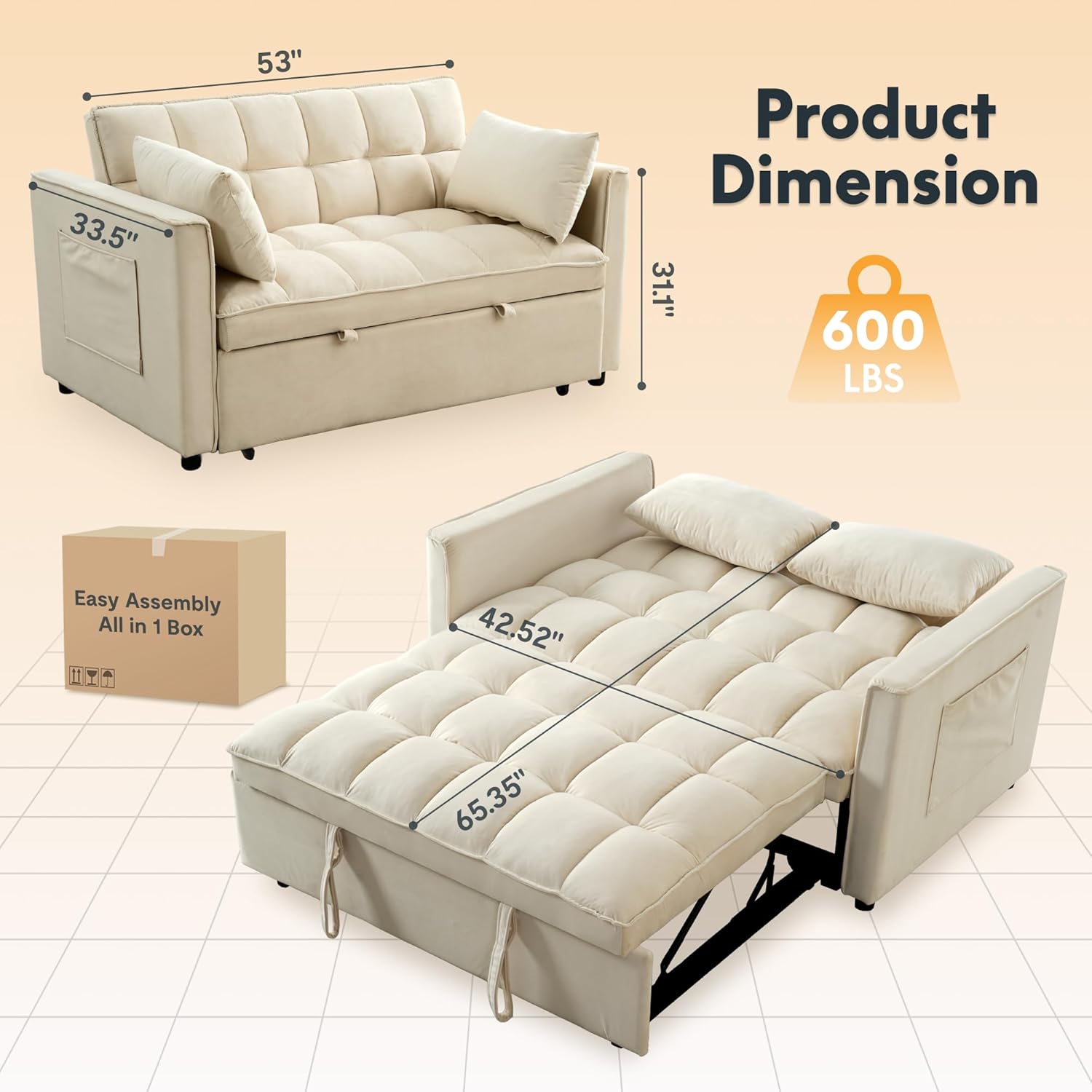 - Pull-Out Sleeper Function: Features a smooth pull-out mechanism for quick conversion to a bed, ideal for unexpected guests.