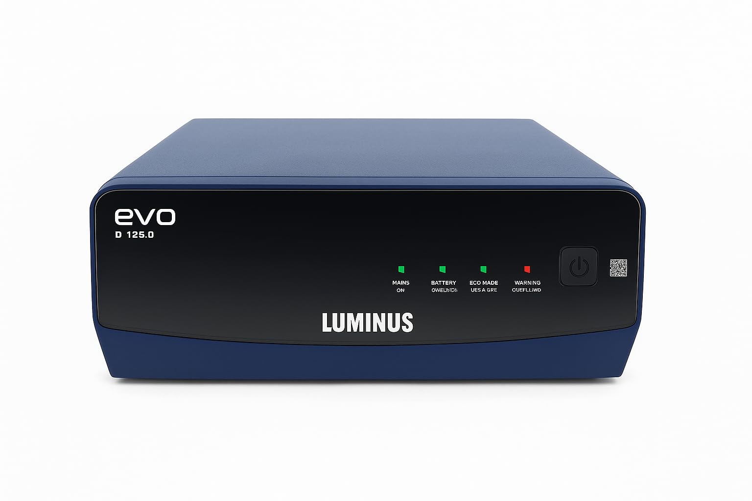Figure 1: Front view of the Luminus EVO D 1250 Pure Square Wave Inverter, showing its compact design and LED indicators.