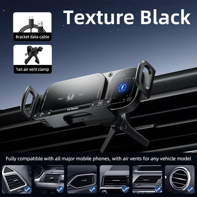 The Saker Wireless Charging Rotating Car Mount is designed to provide a secure and convenient solution for holding and charging your smartphone in your vehicle. Featuring a 15W fast wireless charging capability, auto-clamping mechanism, and 90-degree rotation, it ensures your device is powered and accessible for navigation or calls.