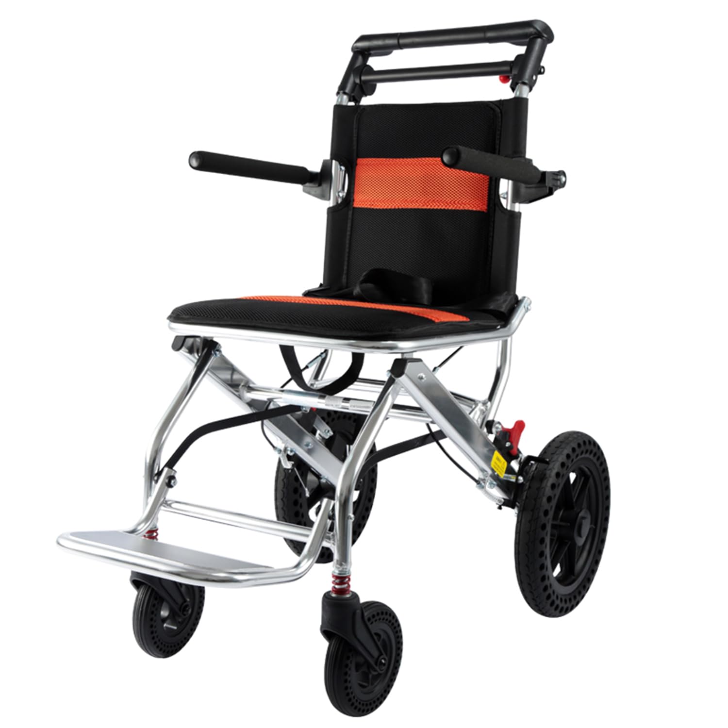| Special Features | Lightweight, foldable, 360° swivel front wheels, padded rotatable armrests, foldable footrests, new braking system with lock function, honeycomb tires. |