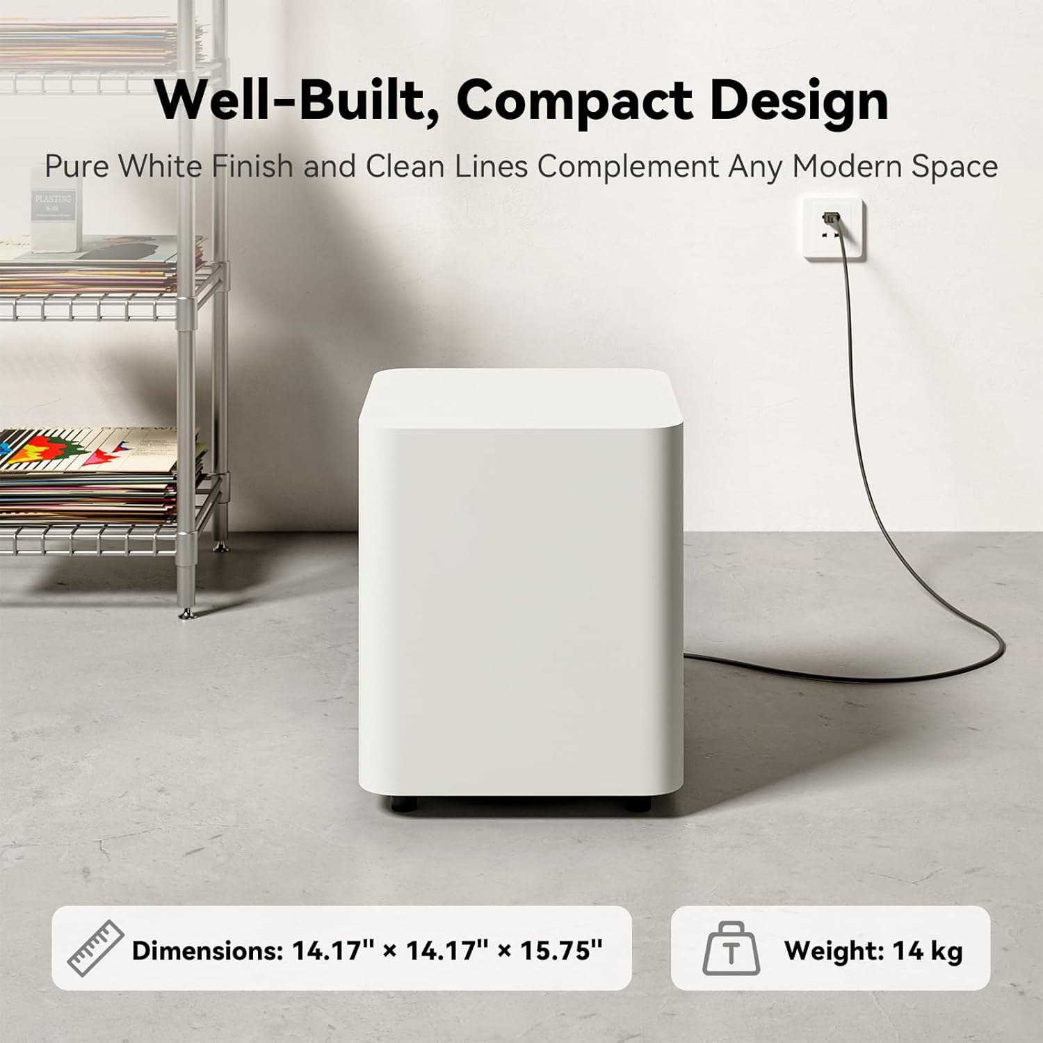 - Compact, Modern, and Versatile: Sleek 14.17 x 14.17 x 15.75-inch design with a minimalist front panel, suitable for various home audio setups.