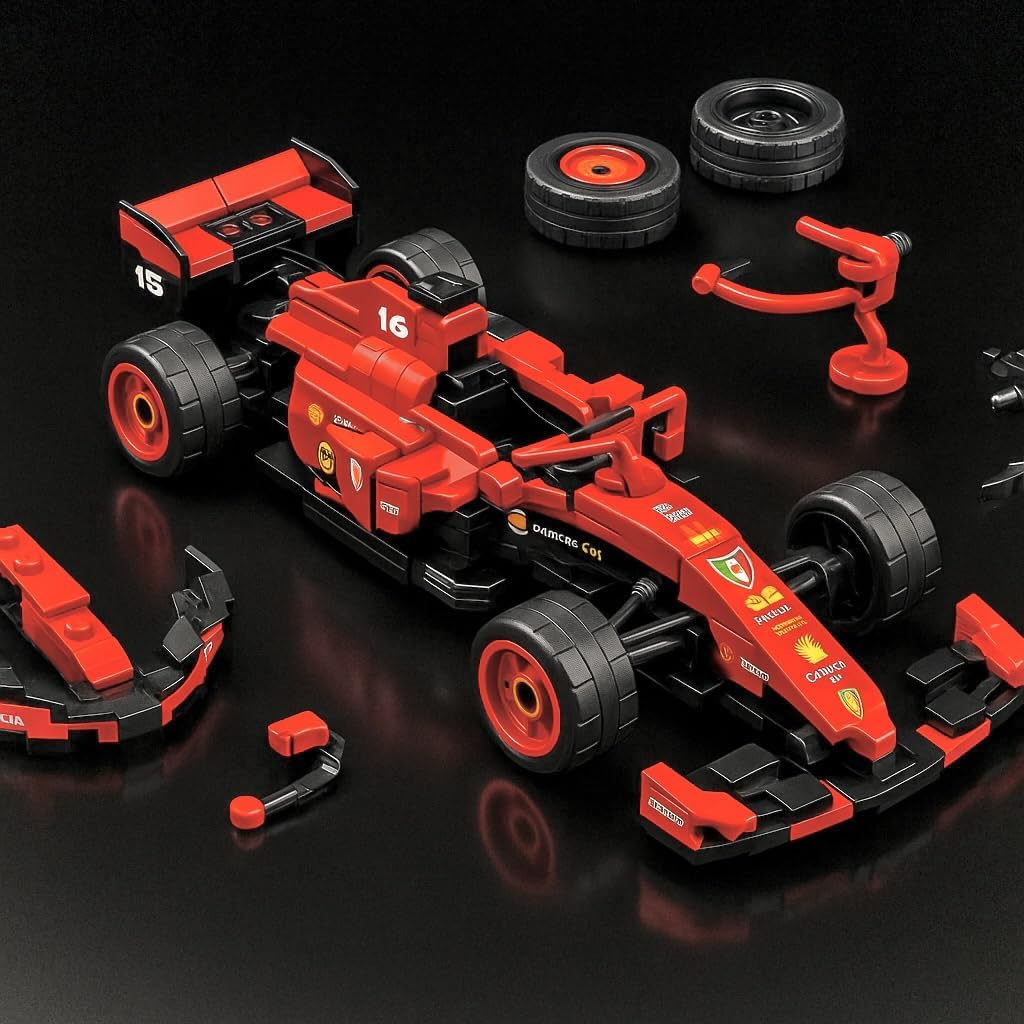 - Aerodynamic Elements: Add the front and rear spoilers, side pods, and other decorative pieces to complete the F1 car's distinctive look.