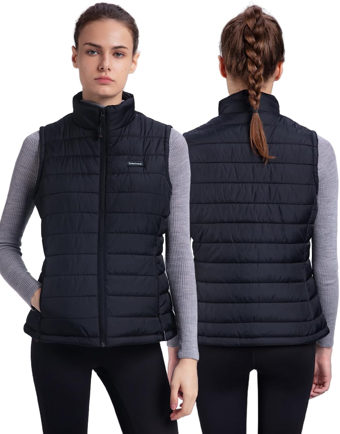 The Soleilwear Women's Heated Vest comes with a full warranty, ensuring quality and customer satisfaction. For any product inquiries, technical support, or warranty claims, please contact Soleilwear customer service through the retailer where the product was purchased or refer to the contact information provided in the included user manual.