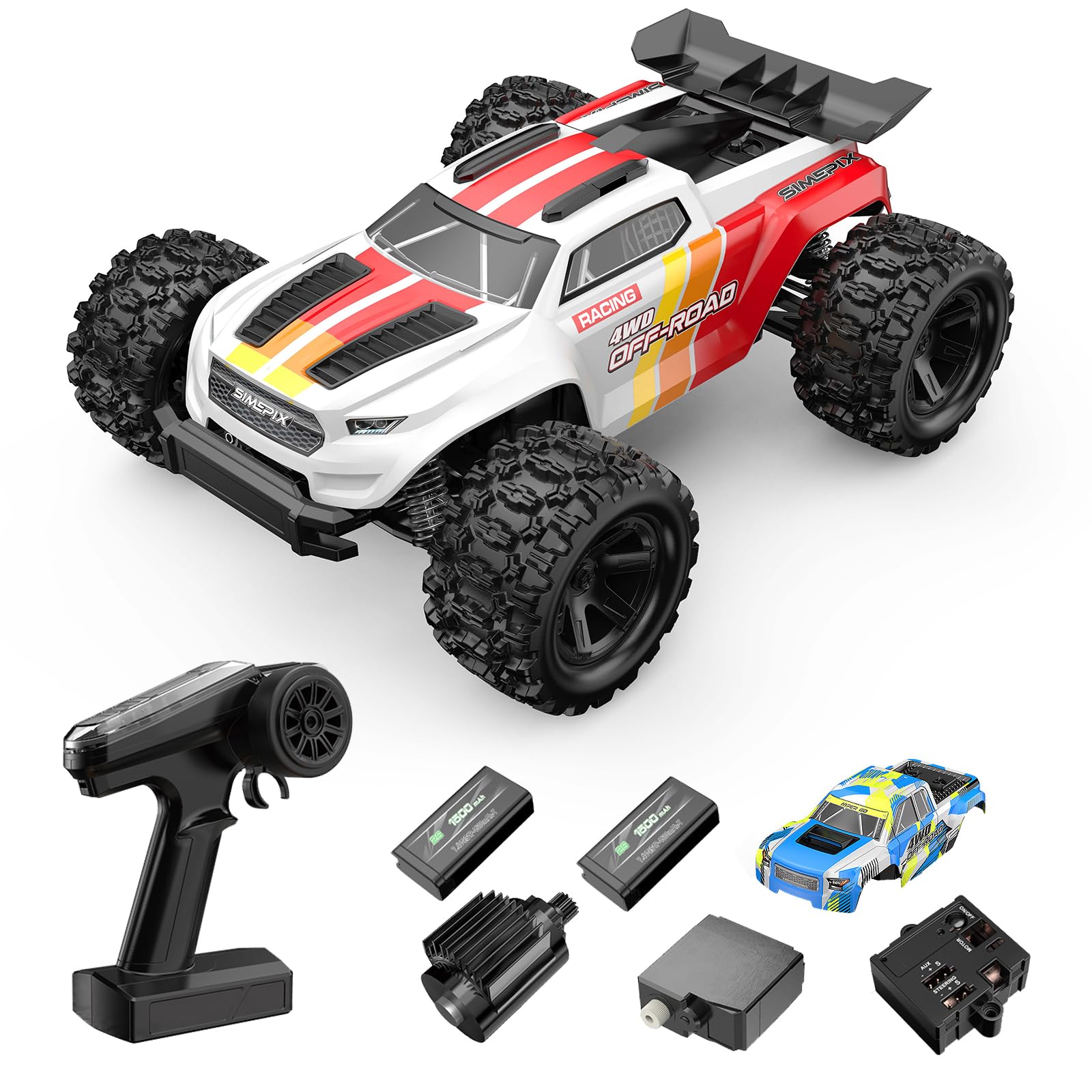 - The truck features a new chassis design with adjustable shocks and independent suspension, making it suitable for dirt, gravel, and grass.