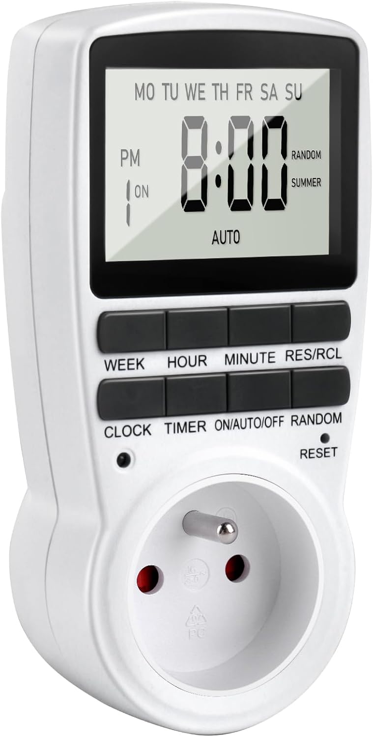 The MECHEER JK-TM02-FR is a digital timer outlet designed for easy programming and control of your electrical devices. It features a clear LCD screen and intuitive buttons for setting various programs.