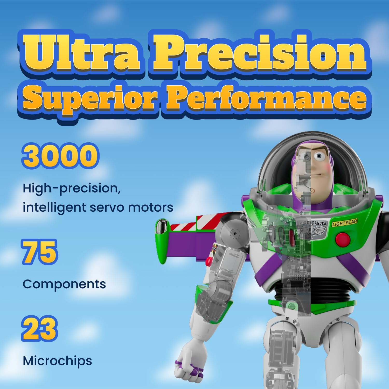 The Robosen Buzz Lightyear Robot is engineered with precision and attention to detail, offering a highly interactive experience: