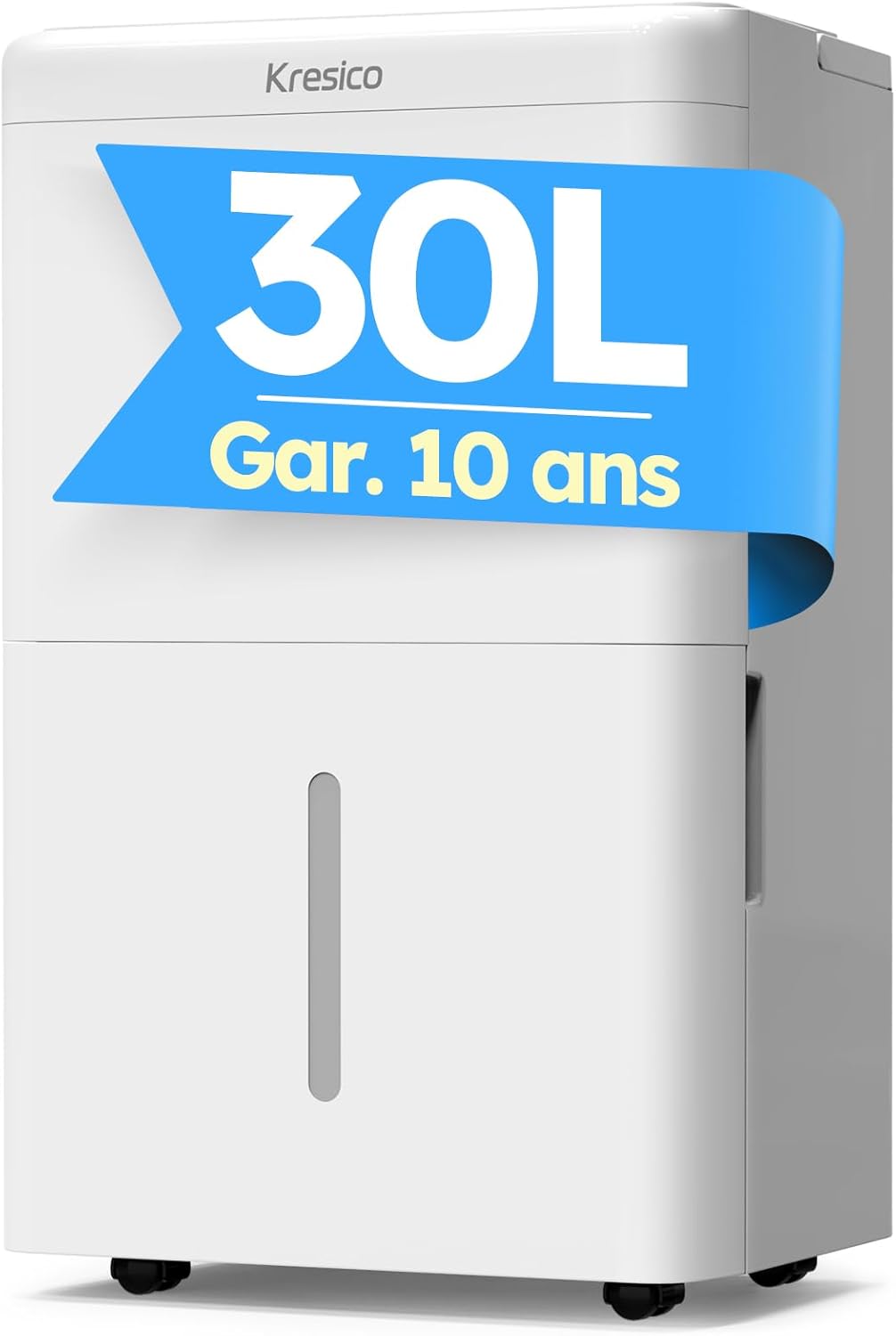 The Kresico KD30-180925-FR is an electric dehumidifier designed for efficient moisture removal in various indoor environments. It features a high dehumidification capacity of up to 30 liters per day, suitable for areas up to 245 m³ (90 m²).