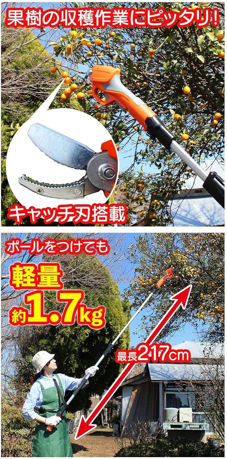 Figure 5: The pruner's lightweight design (approx. 1.7kg assembled) and maximum reach of 217cm.