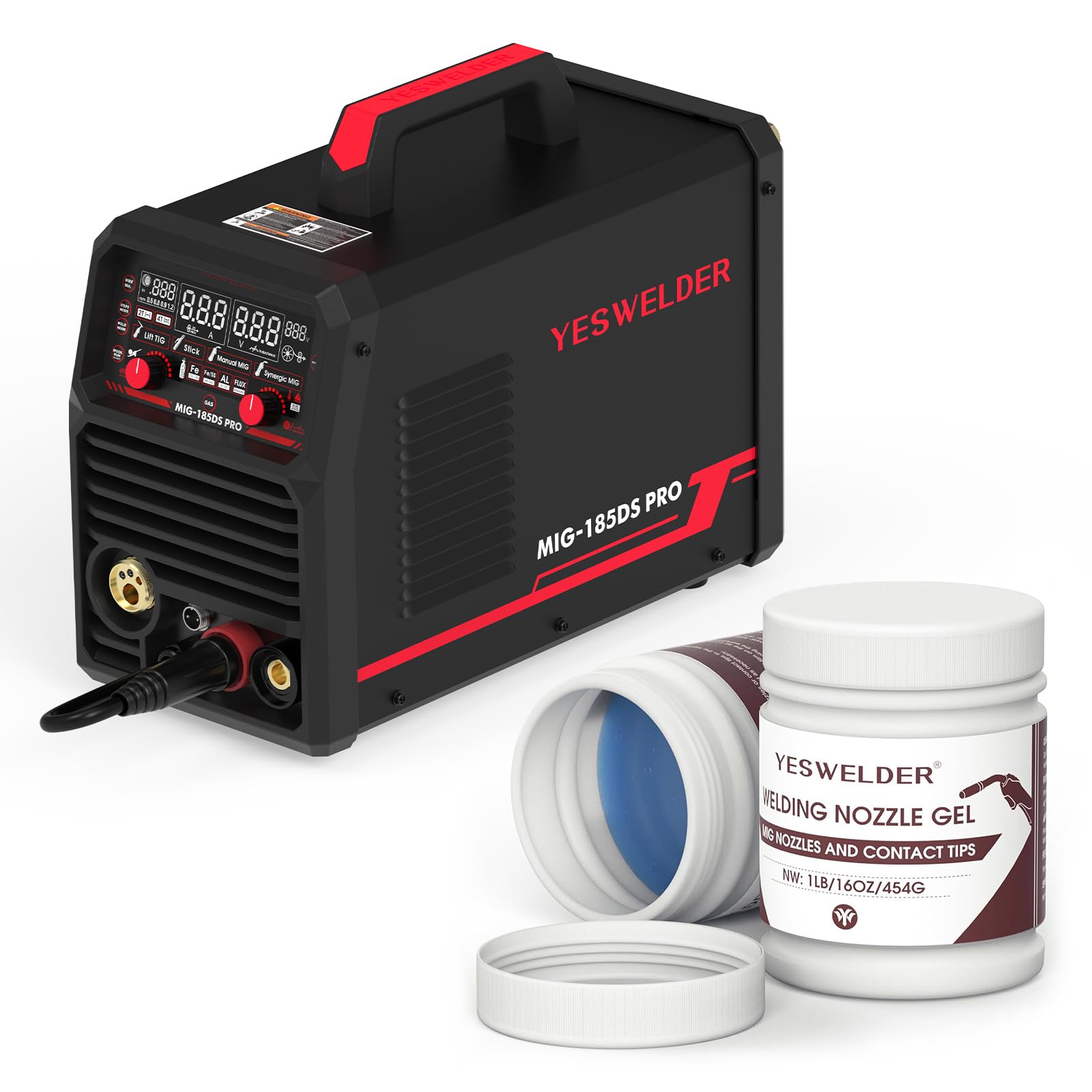 The YESWELDER MIG-185DS PRO is a versatile 5-in-1 multi-process welding machine designed for a wide range of welding applications. It supports Gasless Flux Core MIG, Gas MIG, Spool Gun MIG (for aluminum), Lift TIG, and Stick welding. This unit features an advanced digital display and synergic control for ease of use, making it suitable for both beginners and experienced professionals.