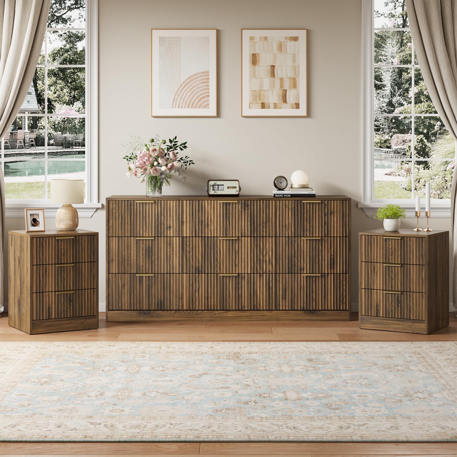 - Storage Capacity: The 9-drawer dresser offers extensive storage, while each 3-drawer nightstand provides convenient bedside storage. Utilize the space efficiently to keep your items organized.