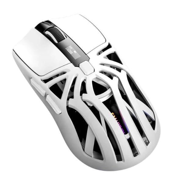 An image showing the SMAILWOLF RS8 Bluetooth Gaming Mouse in white. The mouse features an ergonomic design with multiple buttons and a scroll wheel, highlighting its sleek, lightweight profile.