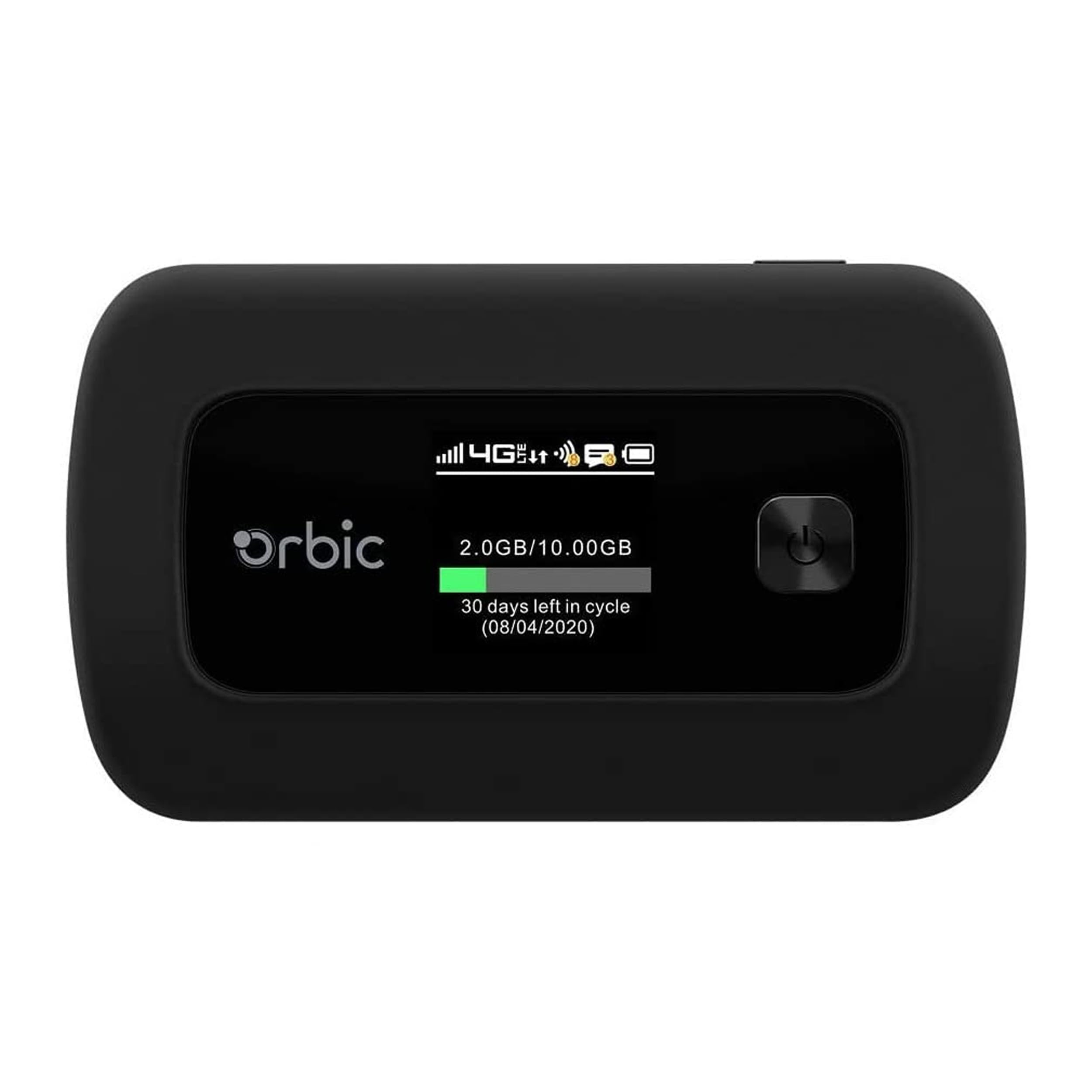 Image: The Orbic Speed RC400L Mobile Hotspot device, shown in its black casing.