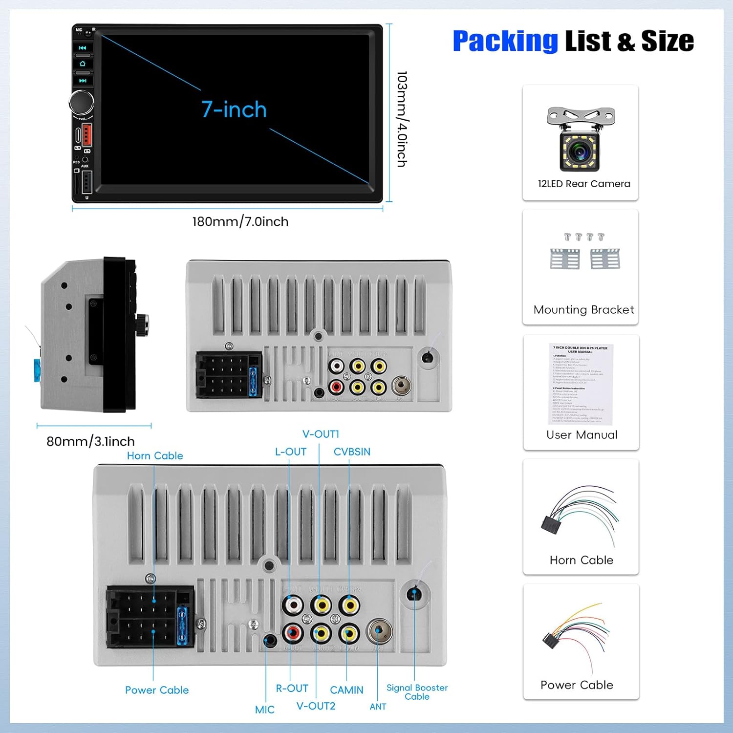 - Zomolither Double Din Car Stereo Unit (7-inch screen)