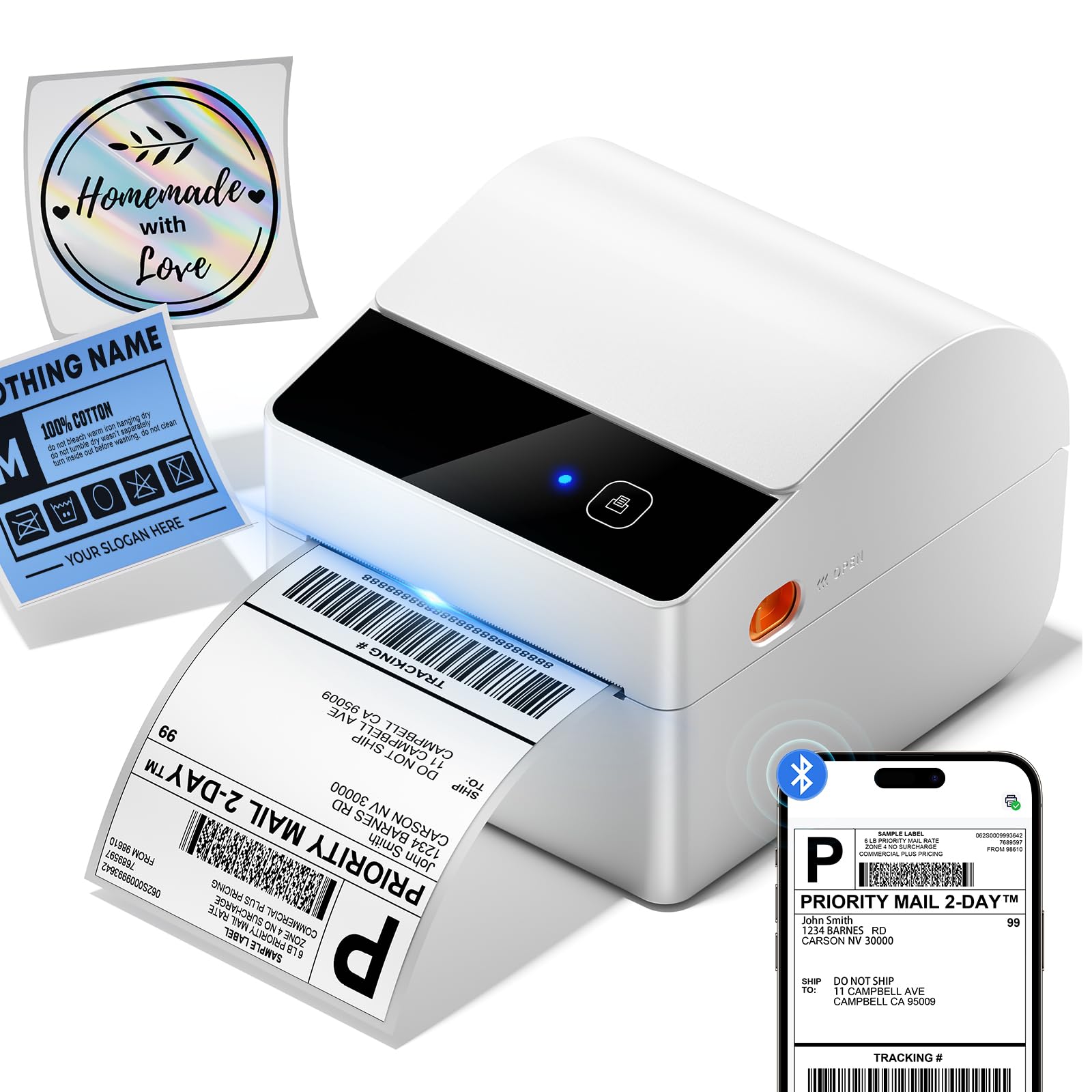 The ASprink A64M features a revolutionary built-in label bin, supporting up to 250 4x6 roll labels, and offers upgraded Bluetooth 5.0 connectivity for wireless printing from computers (Windows/macOS) and mobile devices (iOS/Android), alongside traditional USB connectivity.