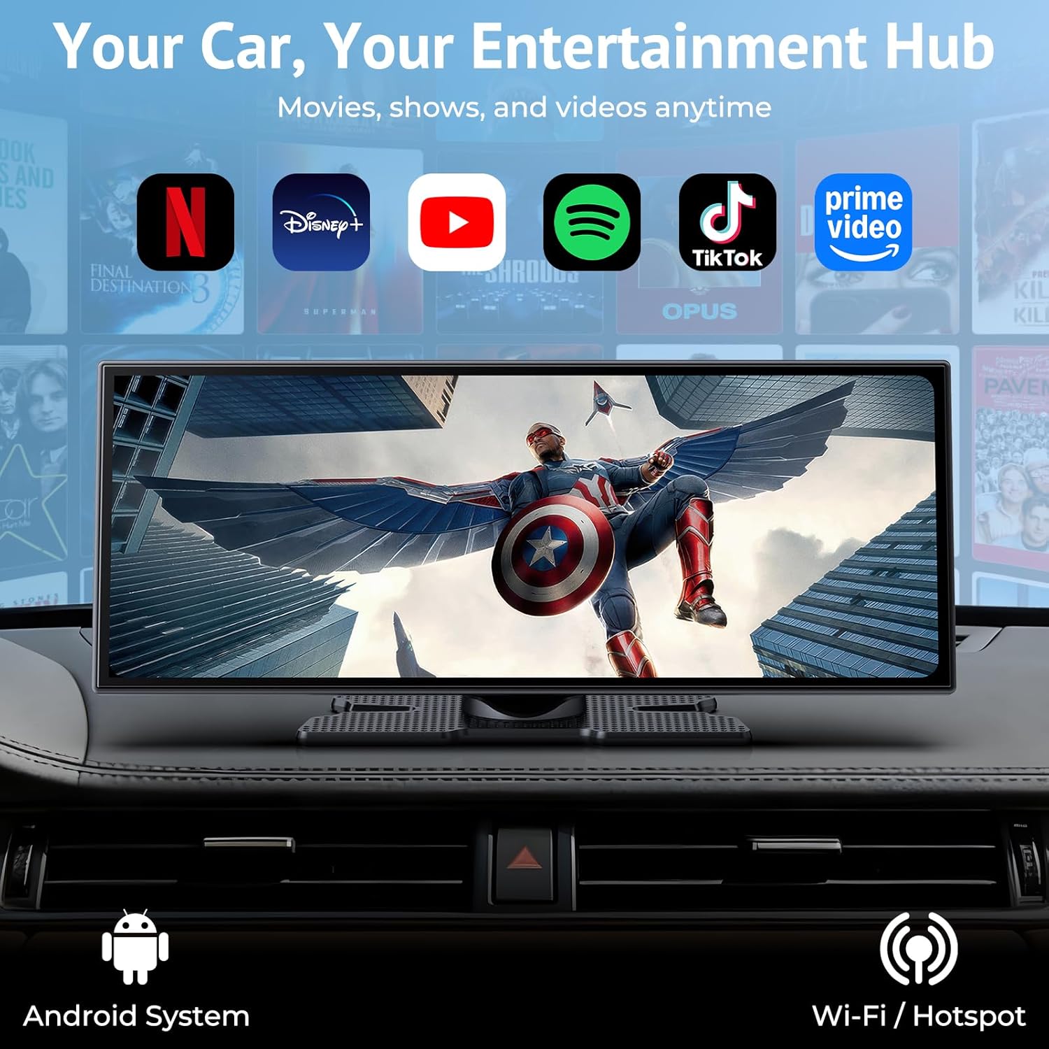 - Streaming Apps: Connect to your phone's hotspot to access pre-installed apps like Netflix, YouTube, and TikTok for video streaming when parked.