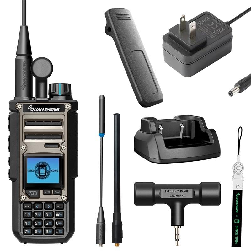 The QUANSHENG TK11(8) Taiko Kong is a 10W portable multiband transceiver designed for radio enthusiasts, offering a wide range of reception and transmission capabilities, along with advanced features like a spectrum analyzer and NOAA weather alerts.