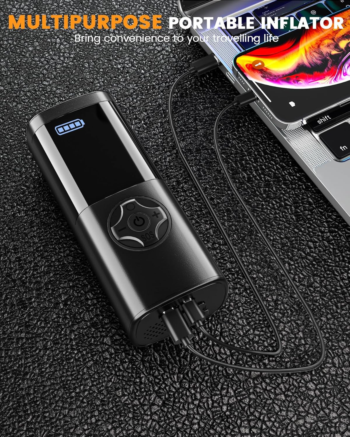 - Portable Power Bank: Features USB output for charging smartphones and other devices.