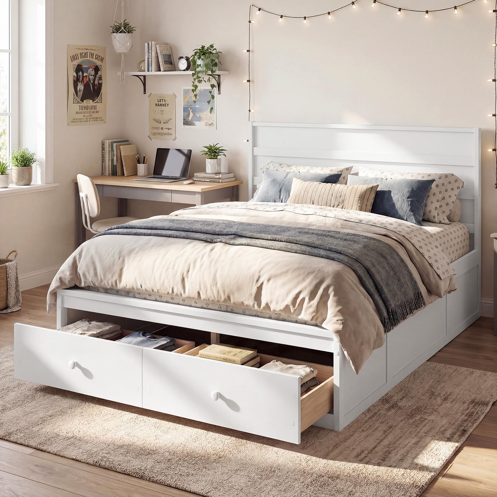 - Mattress Placement: Place your full-size mattress directly onto the bed slats. The embedded platform design helps keep the mattress securely in place.