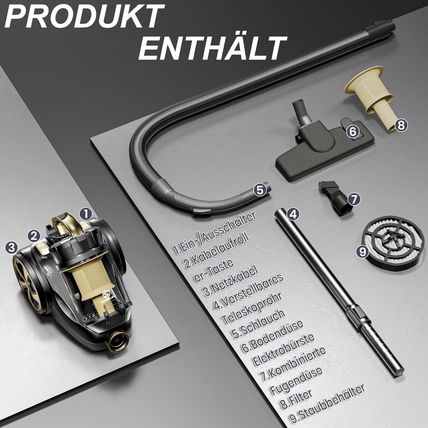- Special Features: Bagless, Compact design, High cleaning radius, Automatic cable retraction