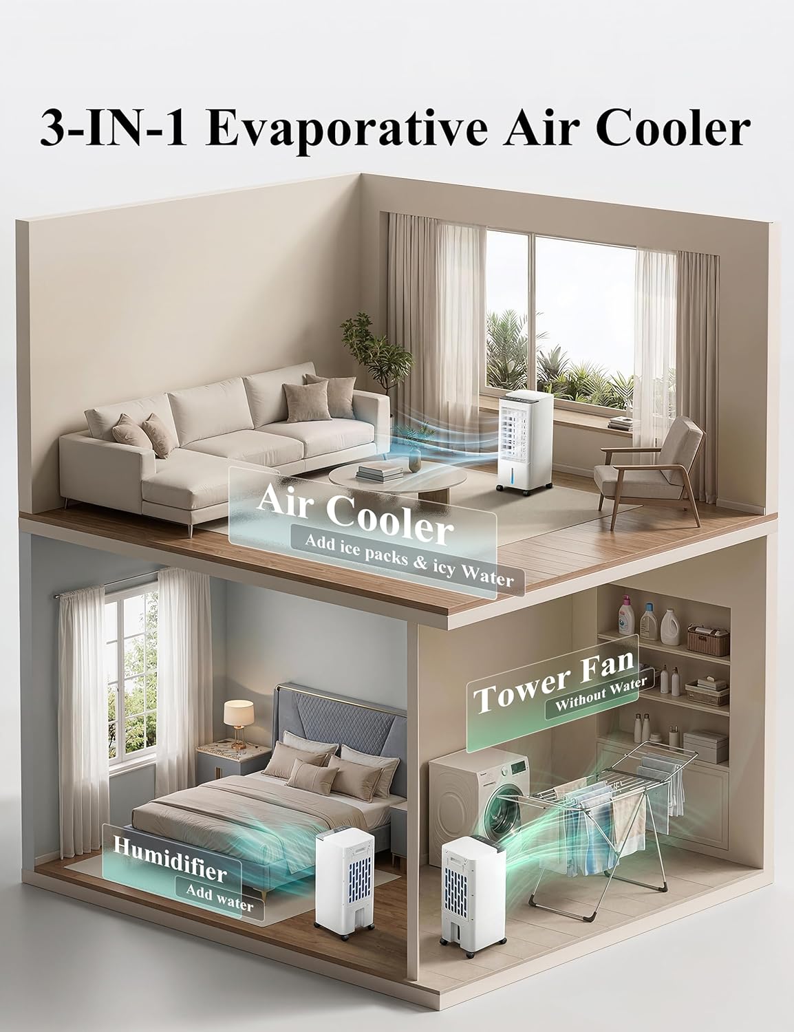 | Functions | 3-in-1 (Cooler, Humidifier, Fan) |