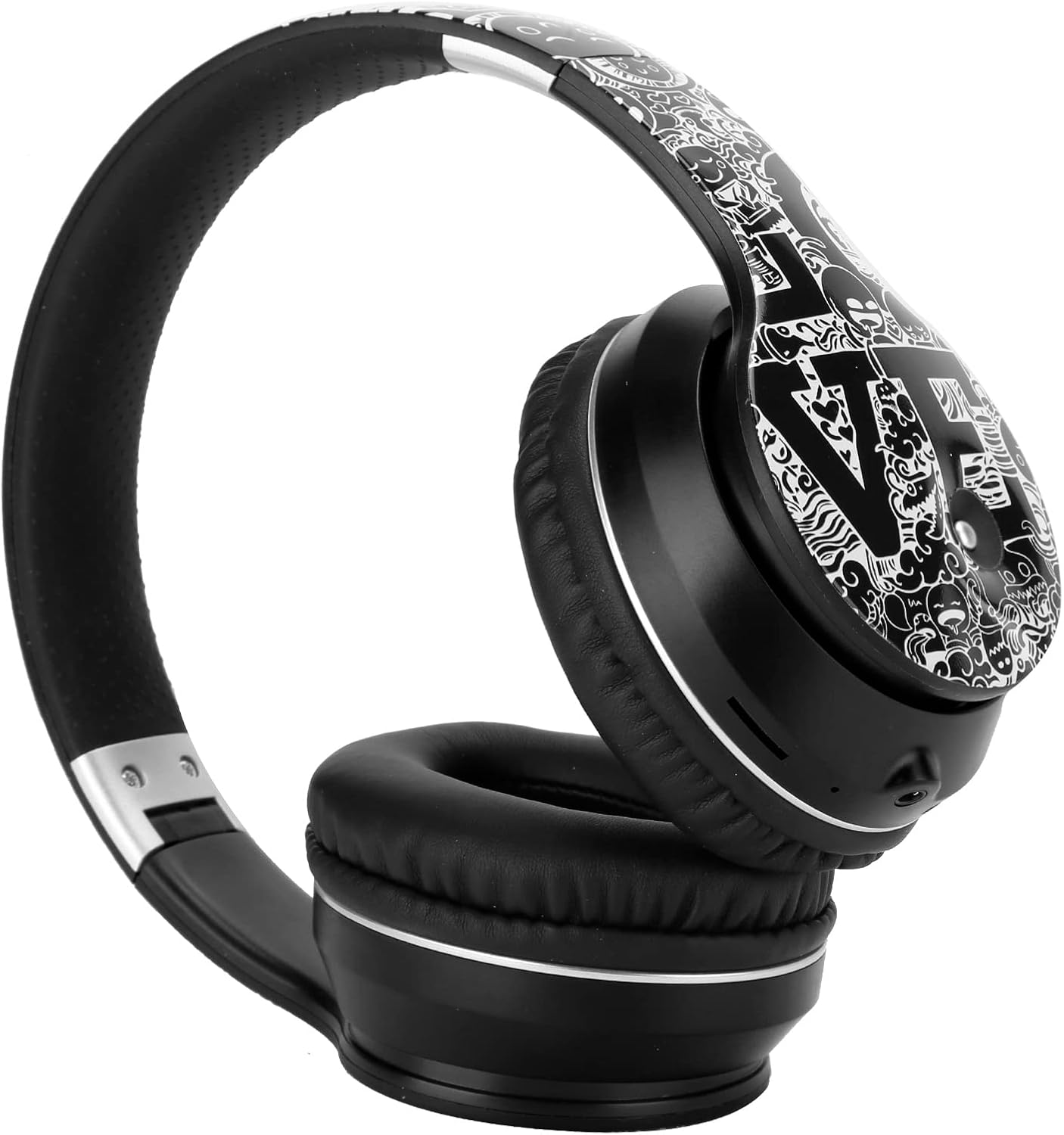Image: The ASHATA BT5.0 Wireless Foldable Headphones in black and silver, showcasinnjihov dizajn preko uha i sklopiva traka za glavu.