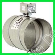 Image 1: The Honeywell ARD20 Automatic Damper. This image shows the cylindrical damper body made of galvanized steel, with an attached control motor assembly on top. The motor housing is a small, rectangular box with wires extending from it, connected to the damper's internal mechanism.