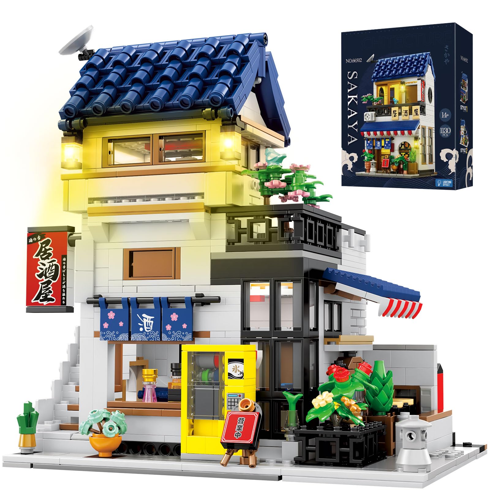 The Reobrix Izakaya Shop includes an integrated lighting set to illuminate the model.