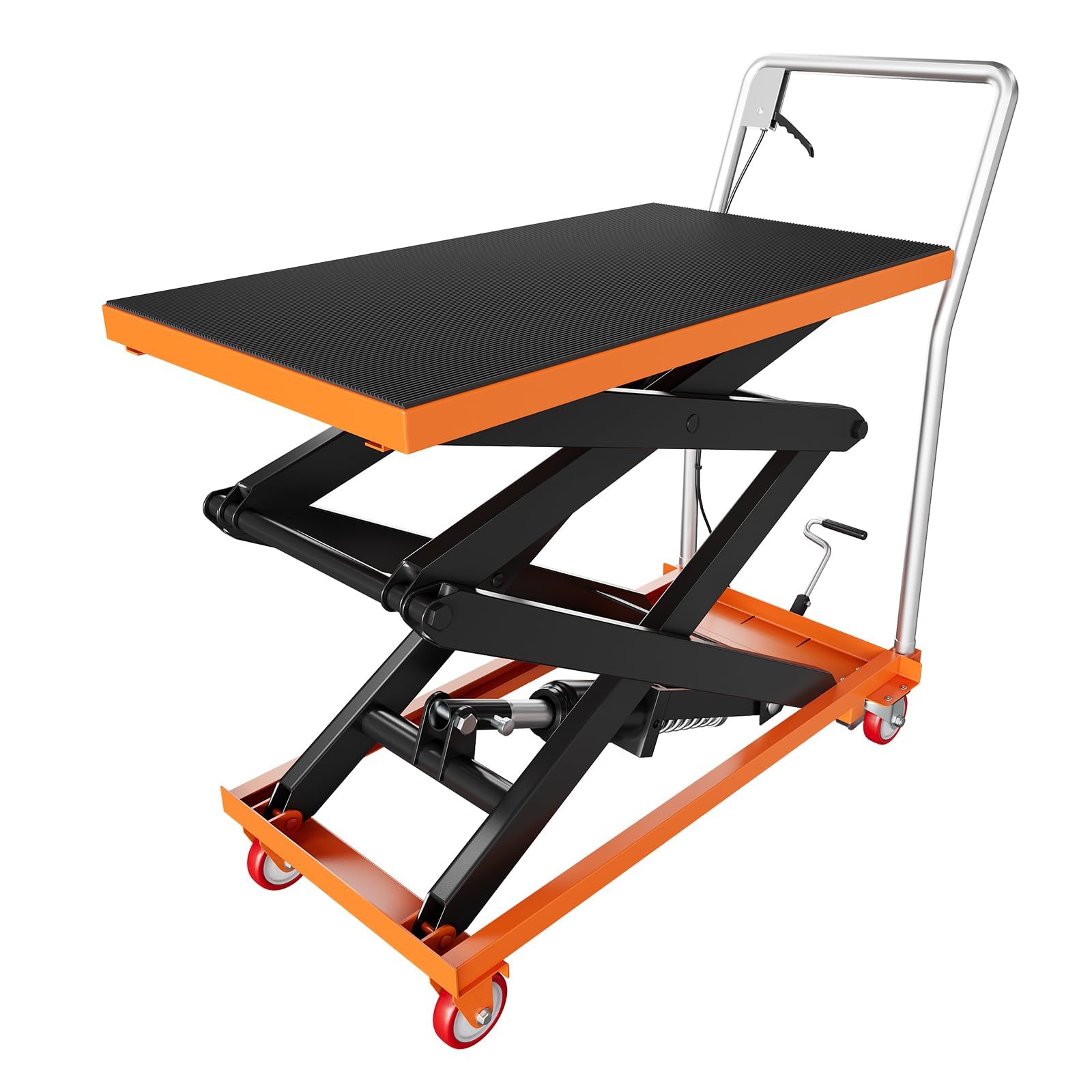 - Step on the foot pedal repeatedly to raise the platform to the desired height. The hydraulic system will lift the platform smoothly.