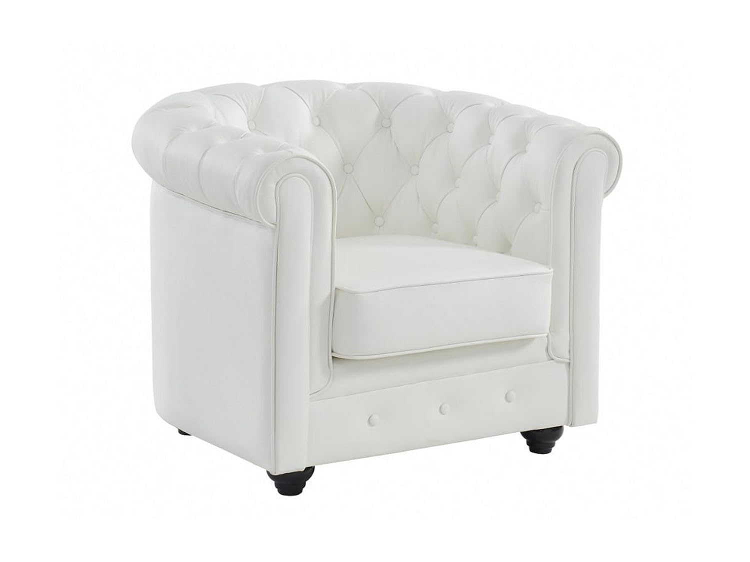 The Vente-unique Chesterfield Armchair is designed for comfortable seating in indoor environments. Its robust construction and quality materials ensure a pleasant user experience.