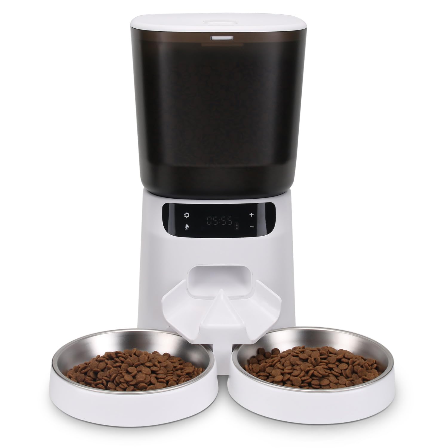 Some models allow for a short voice recording to call your pets at mealtime.