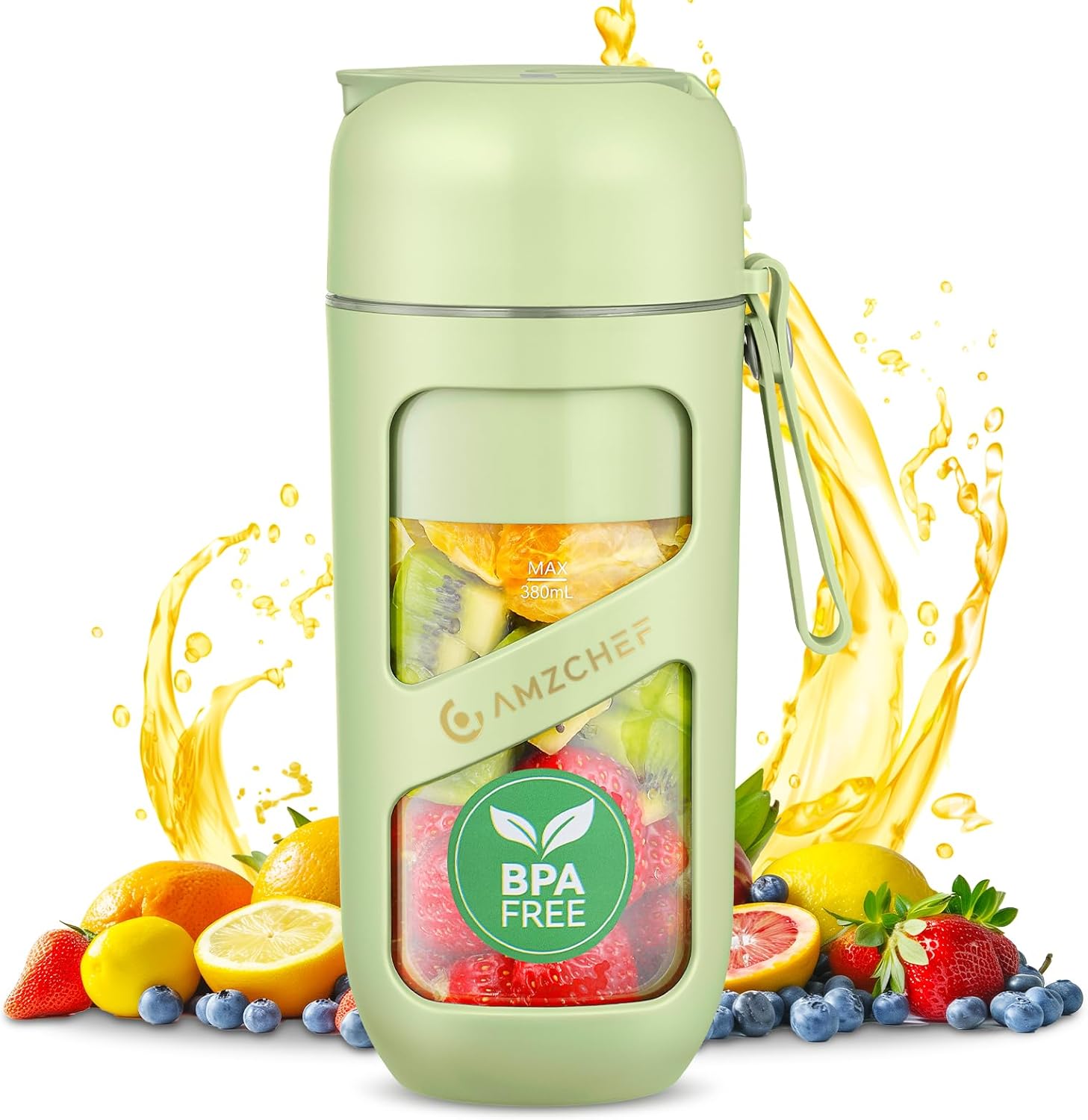 Il frullatore portatile AMZCHEF è progettato per frullare comodamente in movimento ed è dotato di tecnologia sottovuoto per preservare la freschezza.