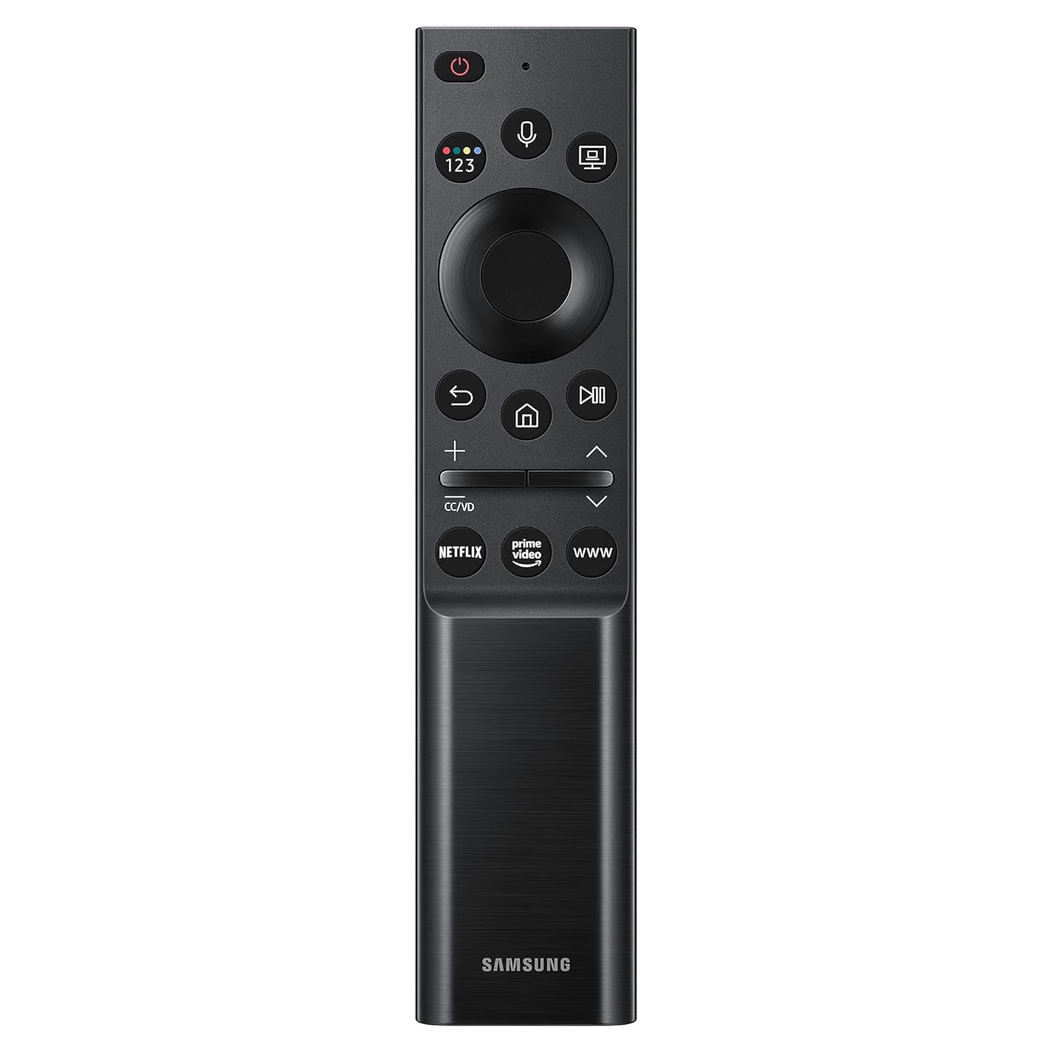 Image: The included remote control for the Samsung Smart Monitor, featuring dedicated buttons for streaming services and navigation.