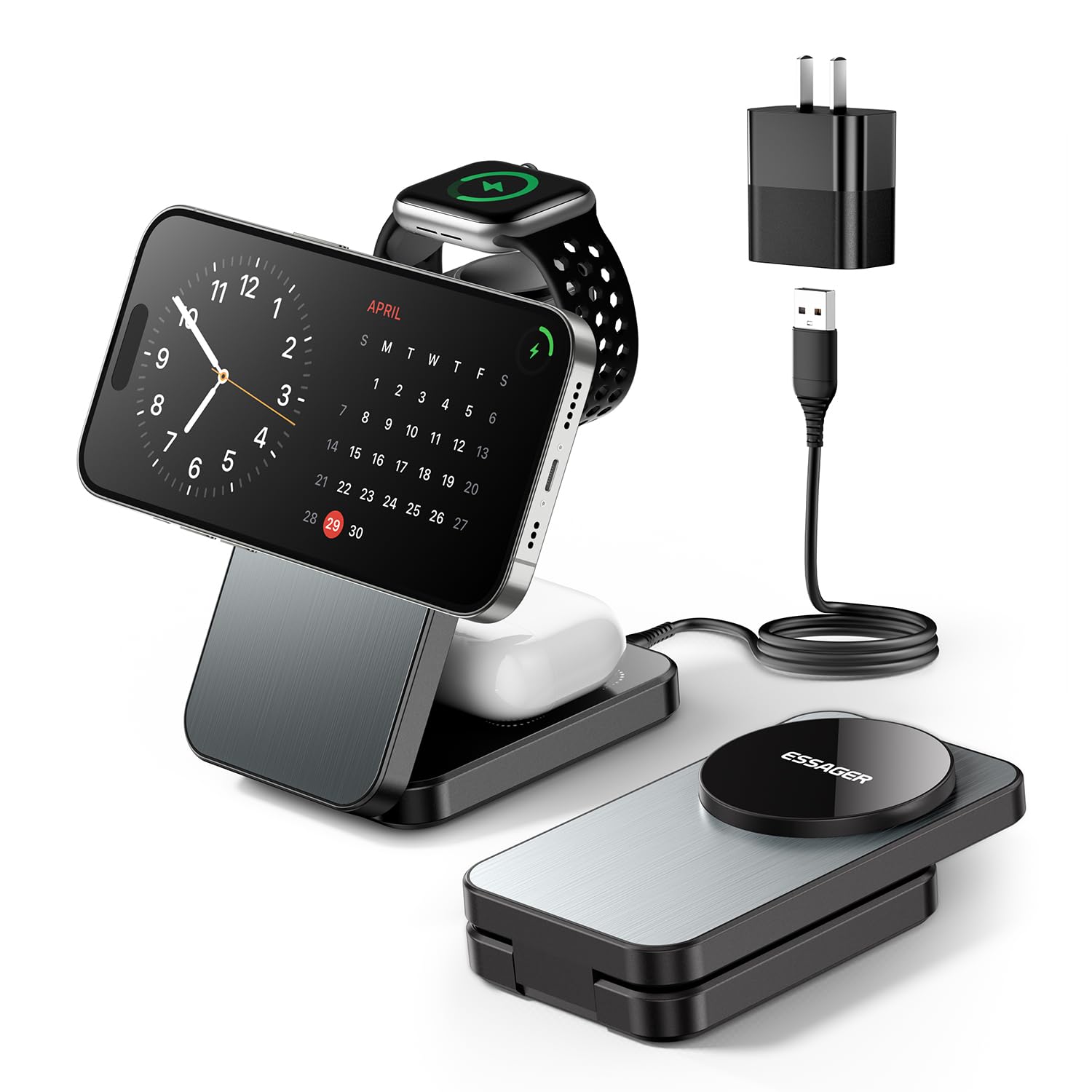 - ESSAGER 3-in-1 Foldable Wireless Charger