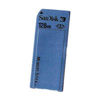 Gambar 1: Hareupeun view of the SanDisk 128 MB Memory Stick.