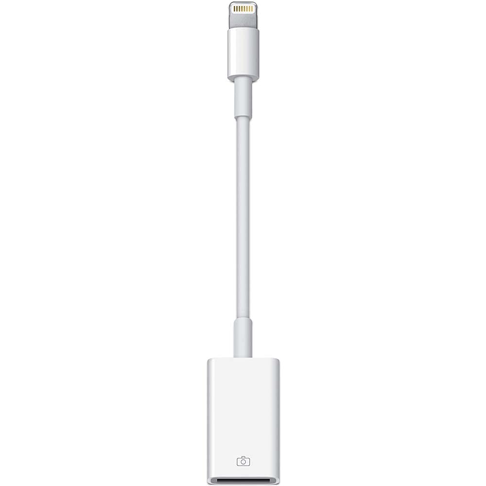 The Apple Lightning to USB Camera Adapter provides a simple way to transfer photos and videos from your digital camera to your Lightning-enabled iPhone or iPad. This adapter allows you to view your media on your device's Retina display and share it with others.