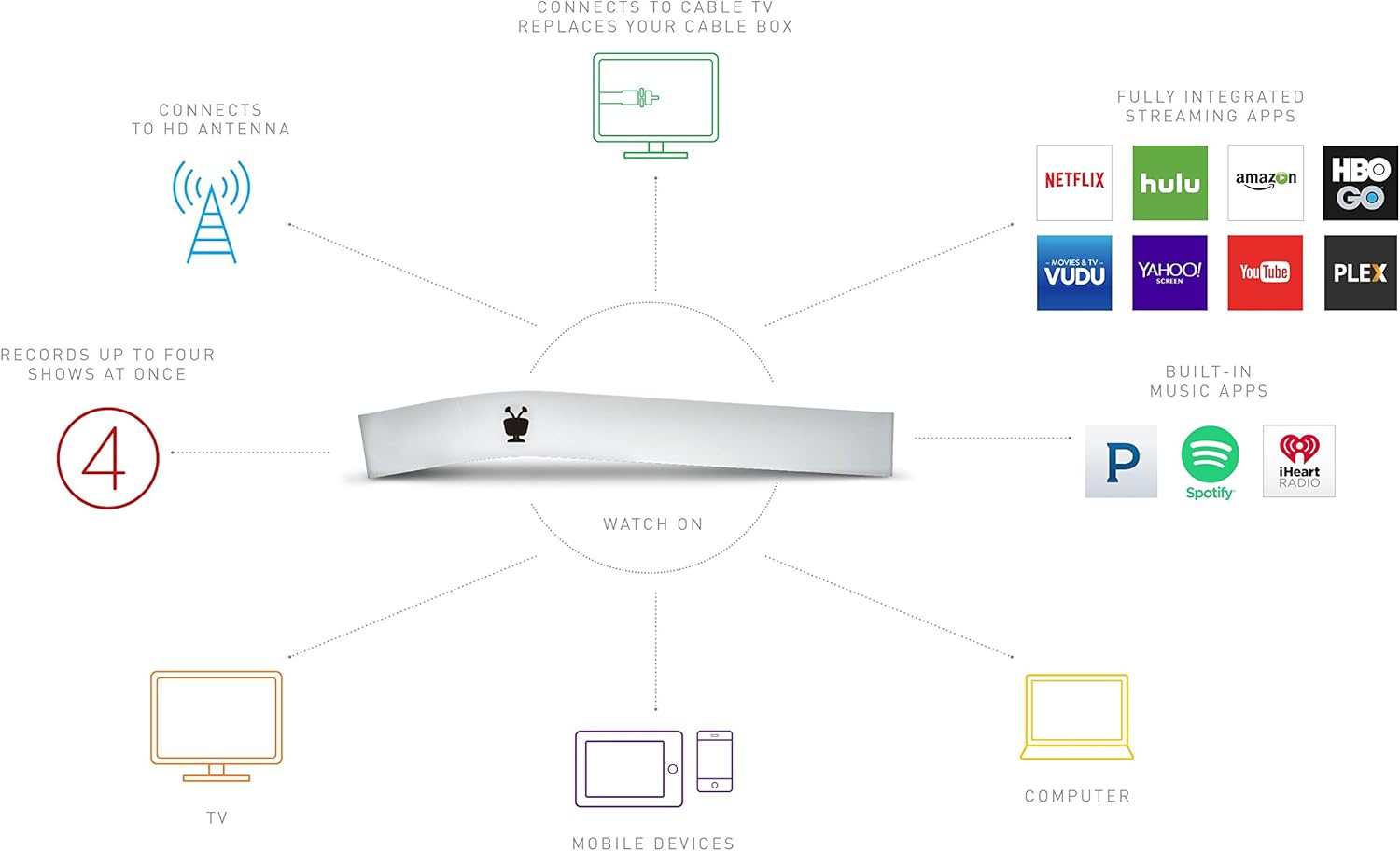 - Compatible with TiVo Mini for multi-room TV solutions.