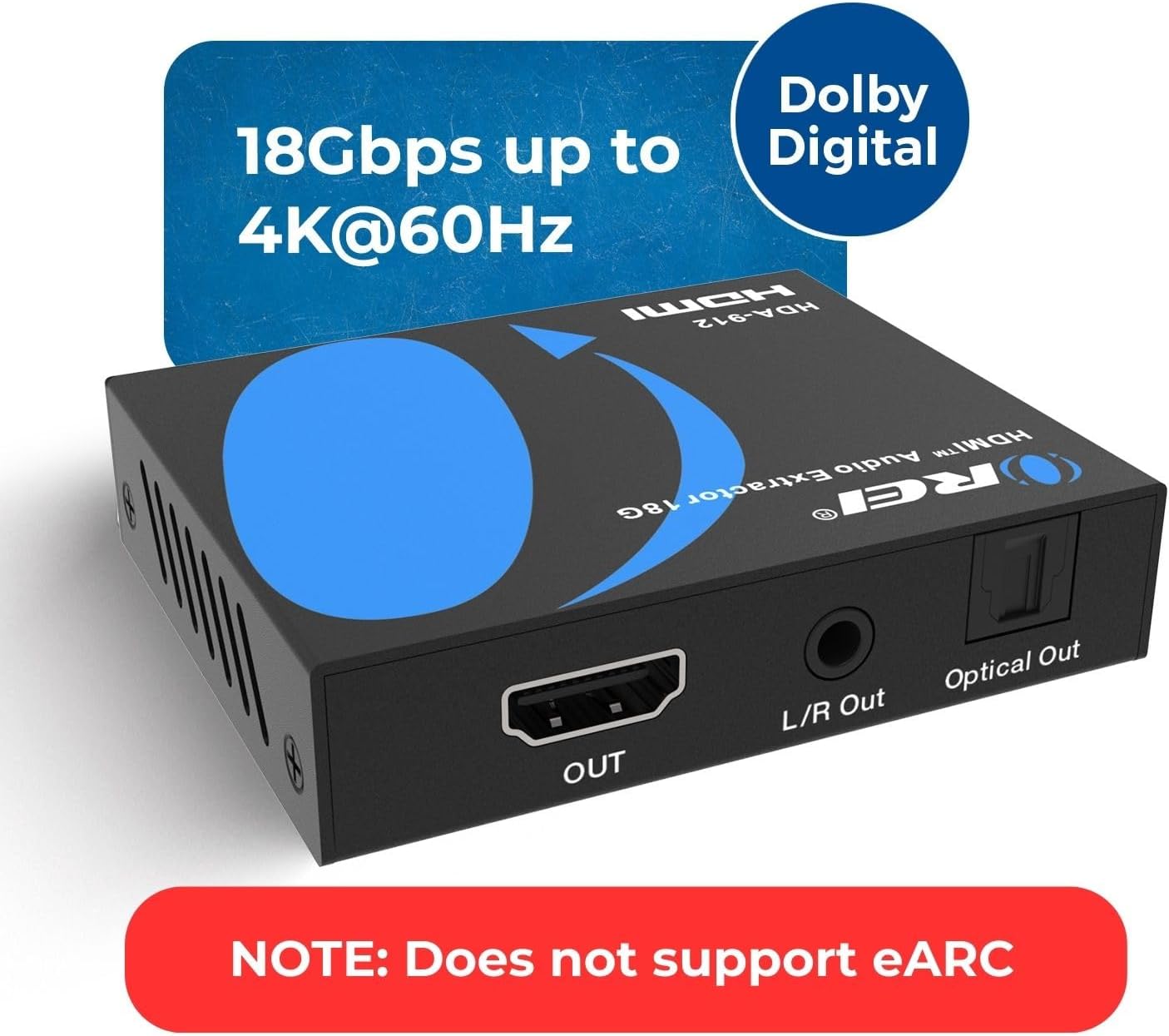 Note: Optical output is limited to 5.1CH and analog (L/R) output is limited to 2CH. The source device must output audio in compatible formats for optical or analog outputs. This extractor does not downmix 5.1CH to 2CH.