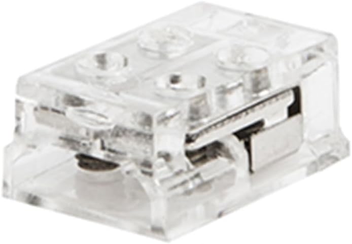 Image 1.1: The WAC Lighting T24-BS-PM-CL Clear Tape-to-Power Connector. This compact, clear connector is used to establish a power connection for LED tape light systems.