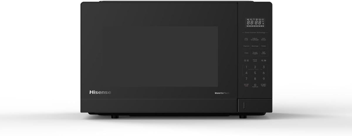 Figure 2: Close-up of the Hisense microwave's LED touch control panel, showing various function buttons and the digital display.