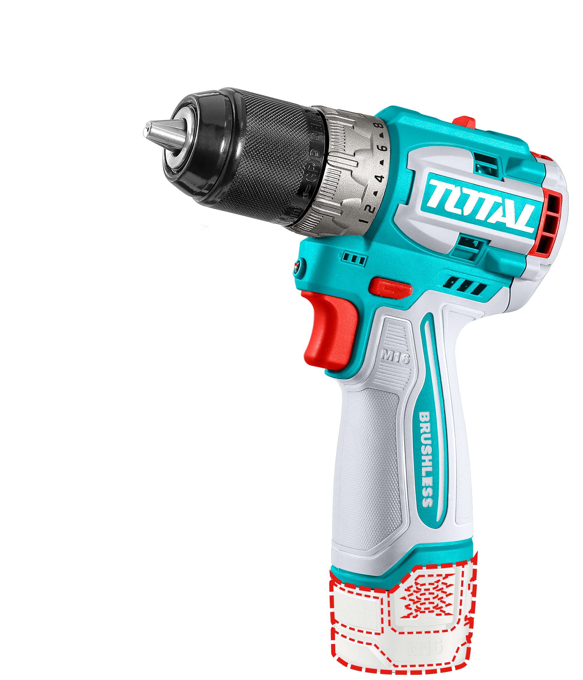 The TOTAL TDLI16682 is a 16V compact brushless cordless drill designed for various drilling and fastening tasks. It features a powerful brushless motor, adjustable torque, and a keyless chuck for easy bit changes.