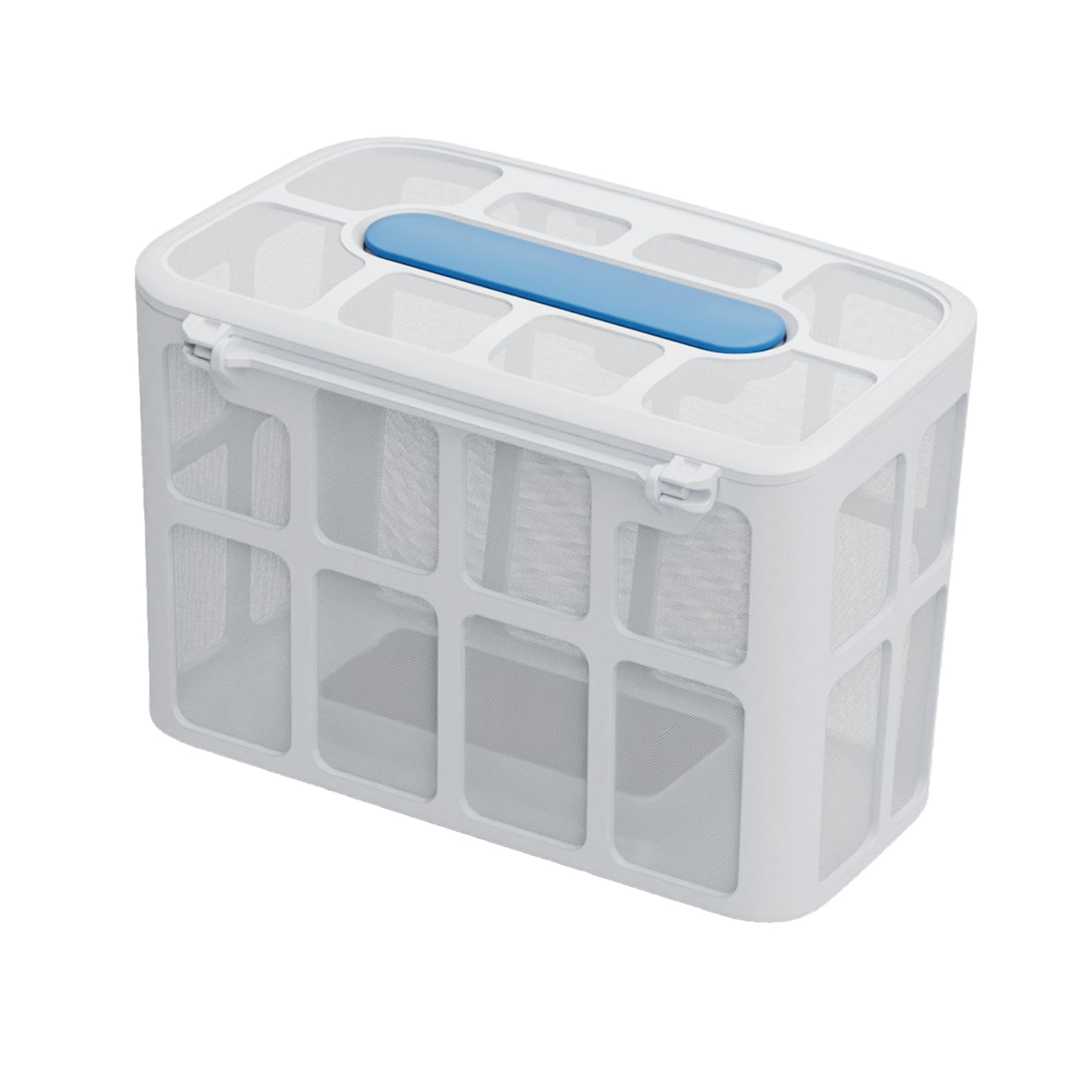 Gambar 1: The AIRROBO PC10 Fine Filter Basket. This image displays the complete filter basket assembly, highlighting its fine mesh material designed to capture small debris effectively. The basket features a sturdy frame and a handle for easy removal and installation.